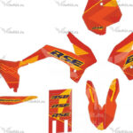 Basically, we make the colors as close as possible to what's on the motorcycle. The colors on the stickers may differ from the colors you see on the screen, or from the color of the stickers on your plastic.