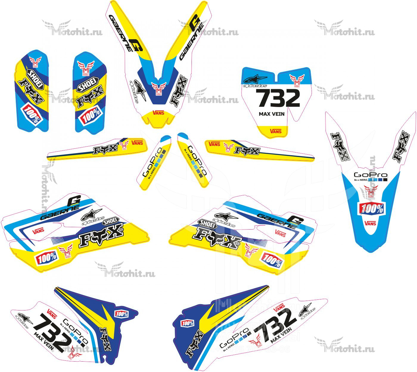 Basically, we make the colors as close as possible to what's on the motorcycle. The colors on the stickers may differ from the colors you see on the screen, or from the color of the stickers on your plastic.