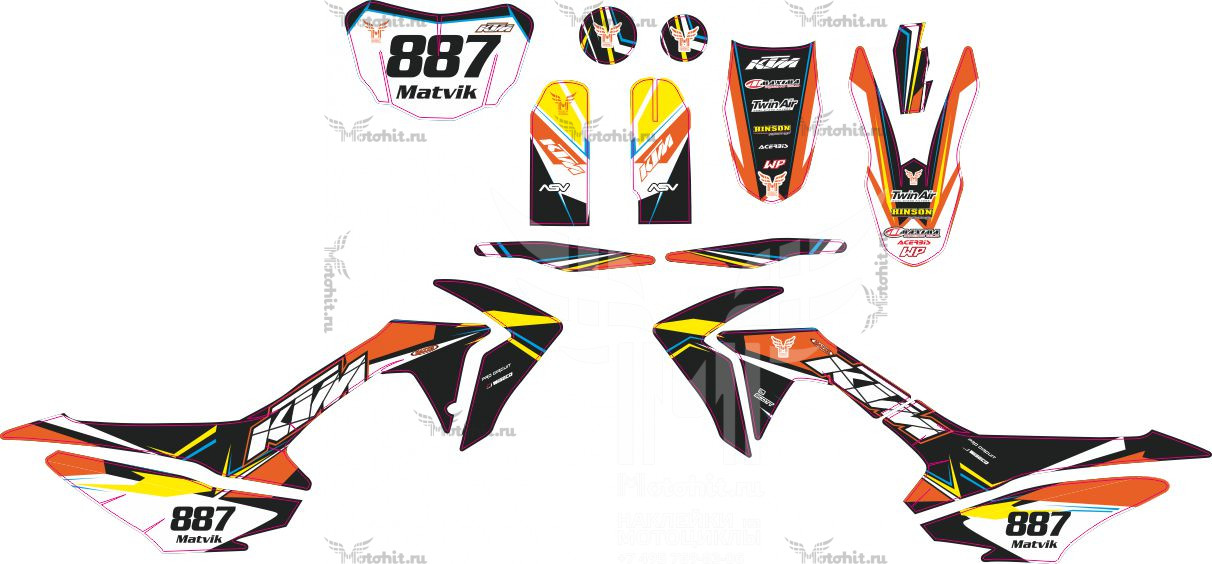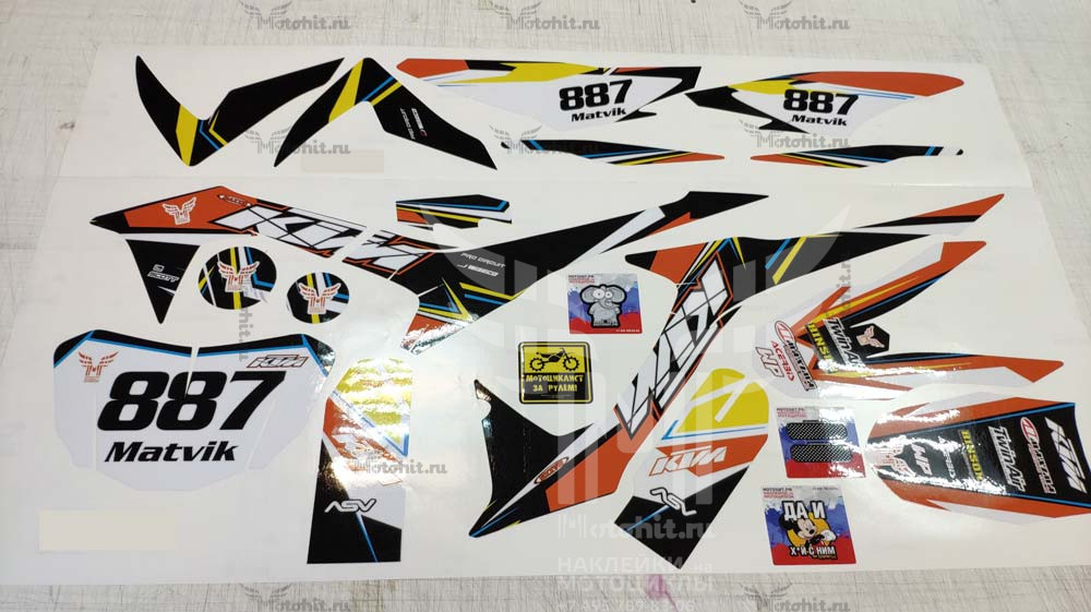Basically, we make the colors as close as possible to what's on the motorcycle. The colors on the stickers may differ from the colors you see on the screen, or from the color of the stickers on your plastic.