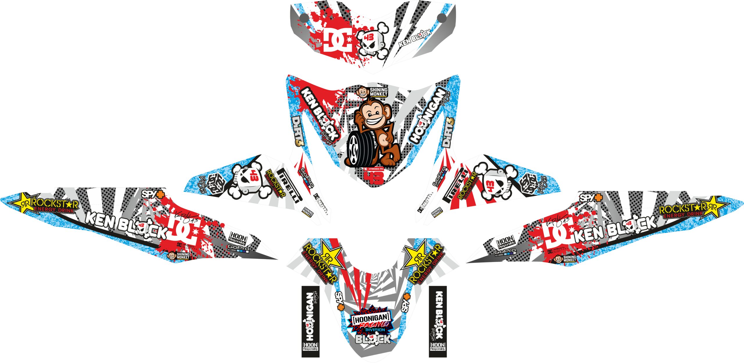 Basically, we make the colors as close as possible to what's on the motorcycle. The colors on the stickers may differ from the colors you see on the screen, or from the color of the stickers on your plastic.